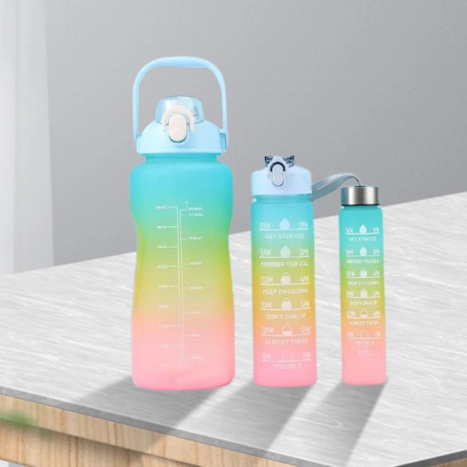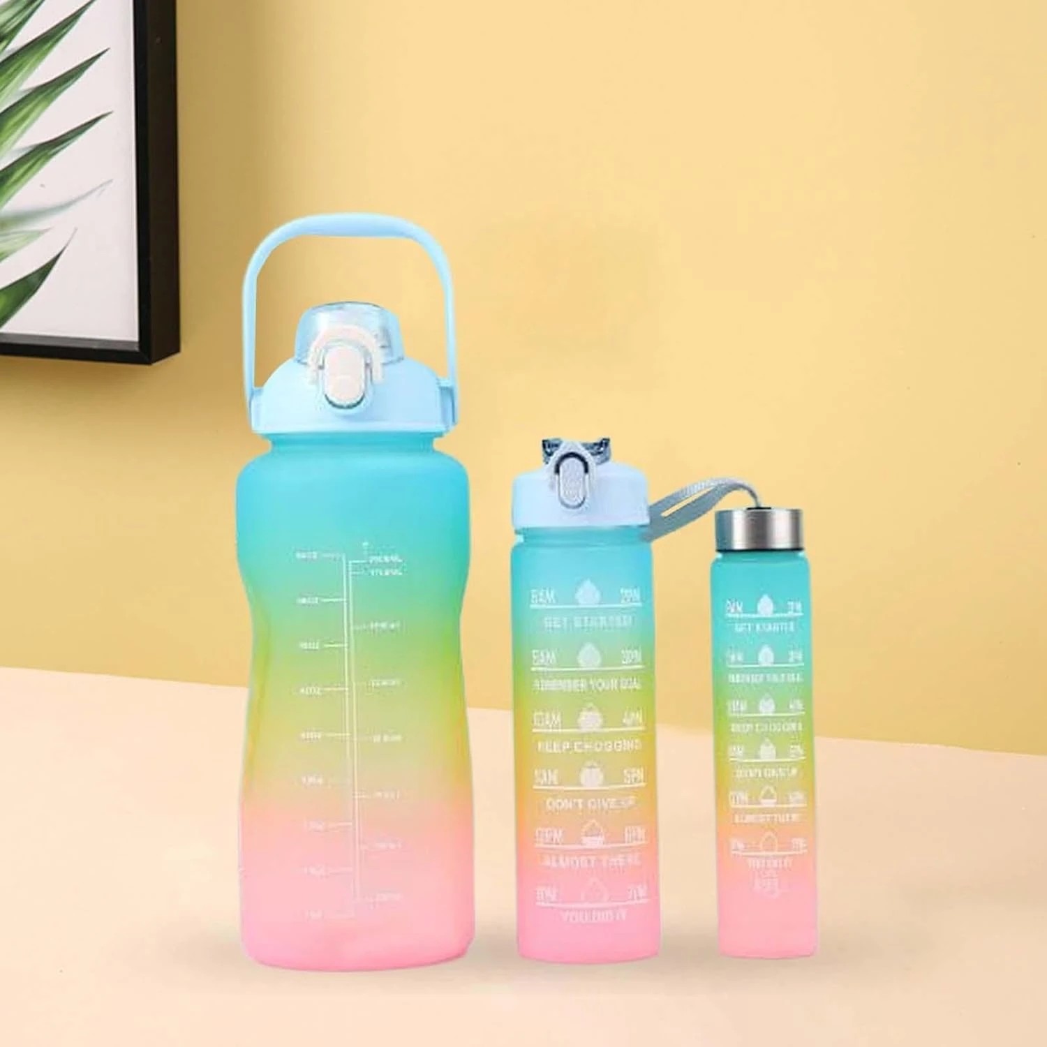 Gym Workout Water Bottle Hydrate with Purpose leakproof BPA-free Sipper Bottle Pack of 3 (300Ml 1000Ml 2000Ml) SET OF 2