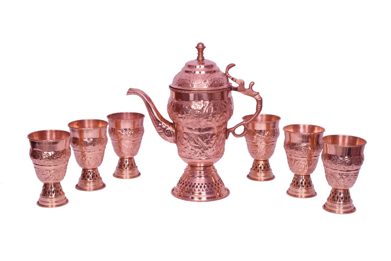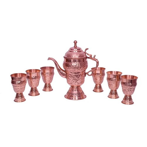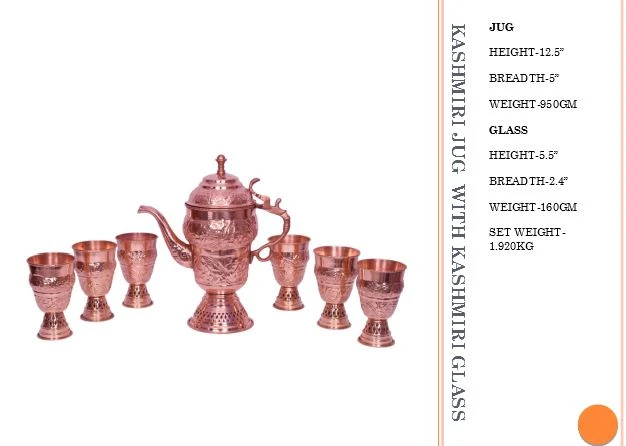 Inspired by the iconic Kashmiri samovar style, this set is perfect for those who appreciate traditional elegance. It not only serves as a practical water pitcher but also doubles as a decorative showpiece, enhancing the aesthetic of both modern and ethnic interiors.