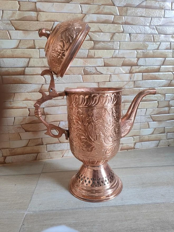 Add timeless elegance and cultural charm to your home with this beautifully crafted Handmade Copper Jug with Lid, inspired by the traditional Kashmiri Samovar design. This exquisite jug set combines heritage craftsmanship with modern utility, making it a perfect choice for both décor and everyday use.