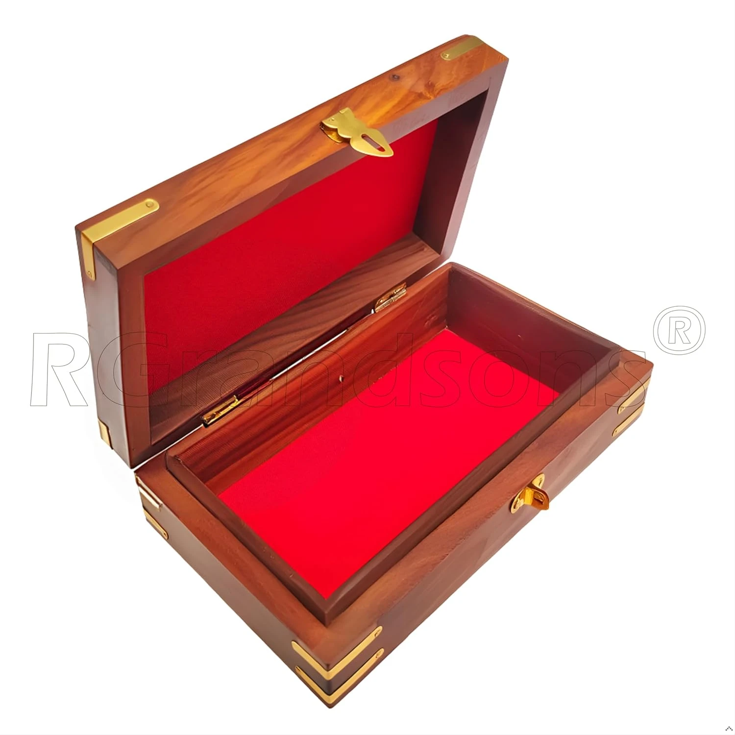 This stunning wooden jewellery box for women features intricate Jali brass work, perfect for storing your treasures.