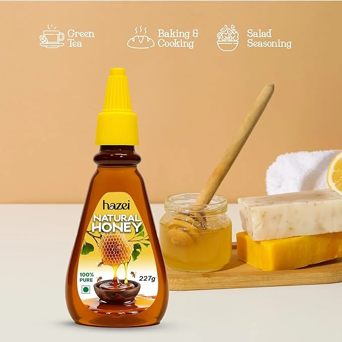 Hazei Honey Squeezy Bottle 227g - Easy Pour, No Mess, 100% Pure & Natural Honey | Unprocessed Natural shahad | Healthy, Rich in Vitamins and Minerals for Energy & Wellness | Daily Use (Pack of 2)