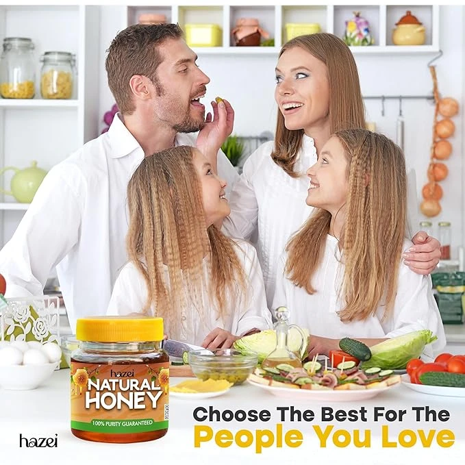 • 100% Pure & Natural Honey - Hazei Natural Honey is carefully sourced and unprocessed to retain its natural aroma, flavor, and nutrients. It delivers the authentic sweetness of nature without artificial additives or processing. With its golden color, thick consistency, and delightful taste, this honey enhances both traditional and modern recipes, offering a premium and authentic flavor experience.