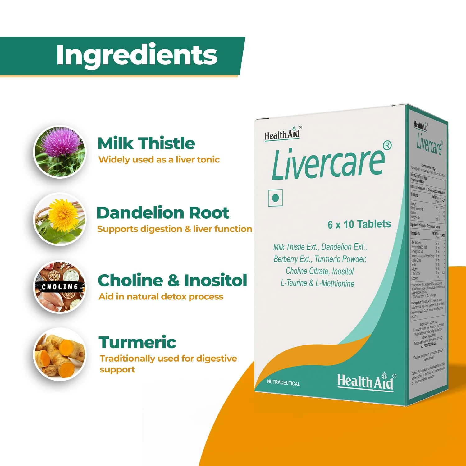 HealthAid Milk Thistle – Liver Support Supplement with Antioxidant Benefits | Supports Liver Cleansing & Healthy Function | For Men & Women – 60 Vegan Tablets