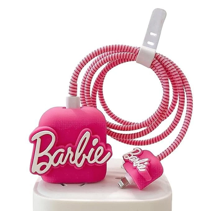 Cable Protector with 3D Cute Pattern for iPhone Charger only 18W & 20W-Data Line Wire Saver Charging Cable Charger Protective Cable Full Protection Set of - 1 (Barbie)