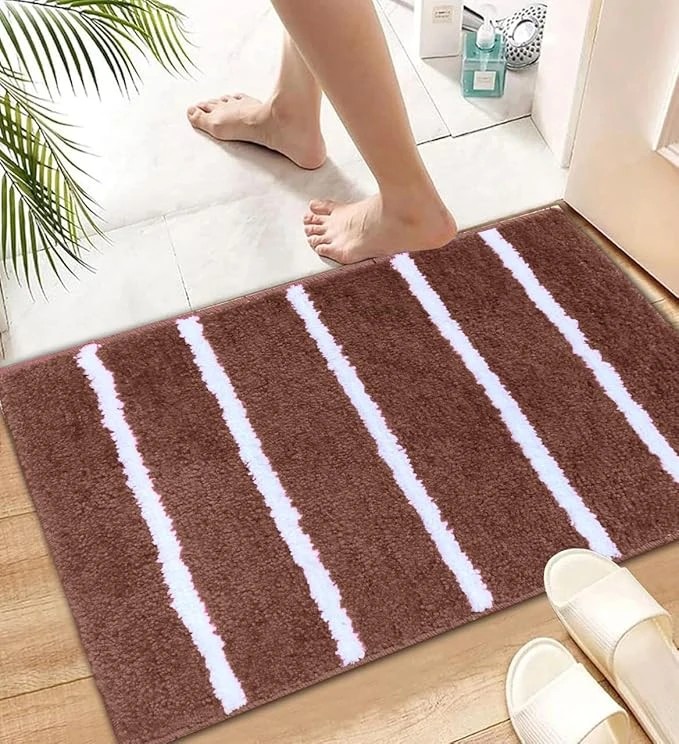 Ir Home Furnishing Soft Microfiber-Ultra Soft Door Mats for Kitchen/Balcony/Entryways/Bathroom/Bedroom TPR Backing Non Skid Door Mat (40 X 60 Cm, Brown-White)