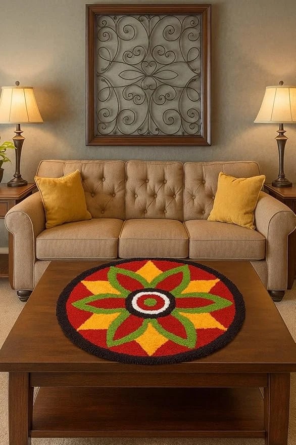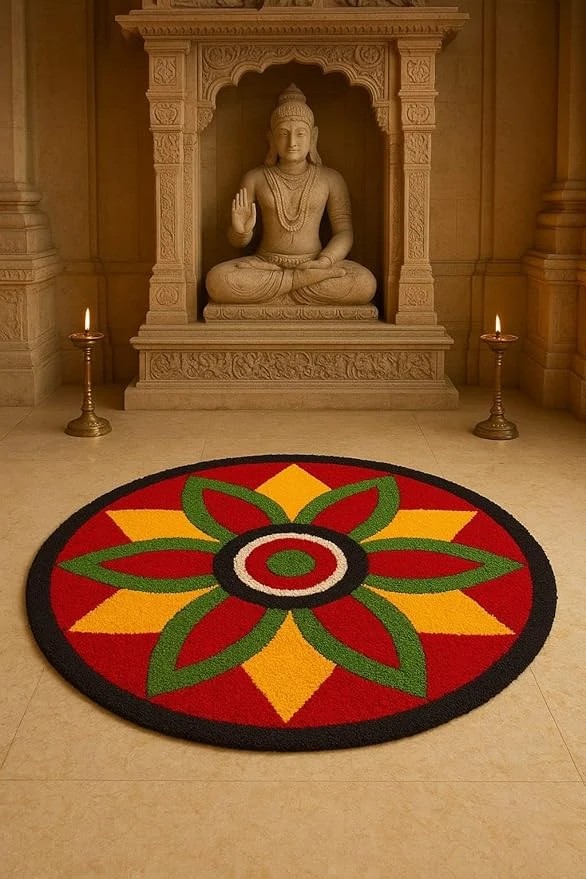 Ir Home Furnishing Super Soft Multicolor Microfiber Traditional Modern Rangoli Round TPR Backing Non Skid Door Mat for Home, Temple, Living Room, Door Entrance, Bedroom (60 X 60 Cm, Design Mat01)