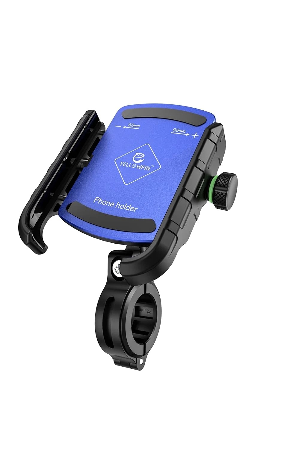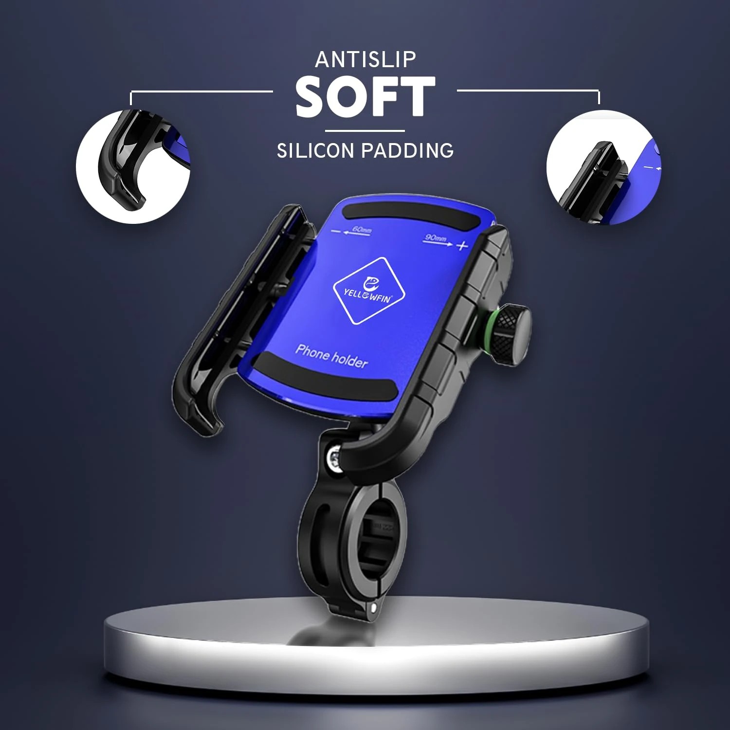 Jaw Grip Bike Phone Holder Mount | 360° Rotation Mobile Holder for Motorcycle | Scooter | Cycle | Aluminium Handlebar Mount for GPS & Maps | Fits Phones 4"–7" (M8S Blue)
