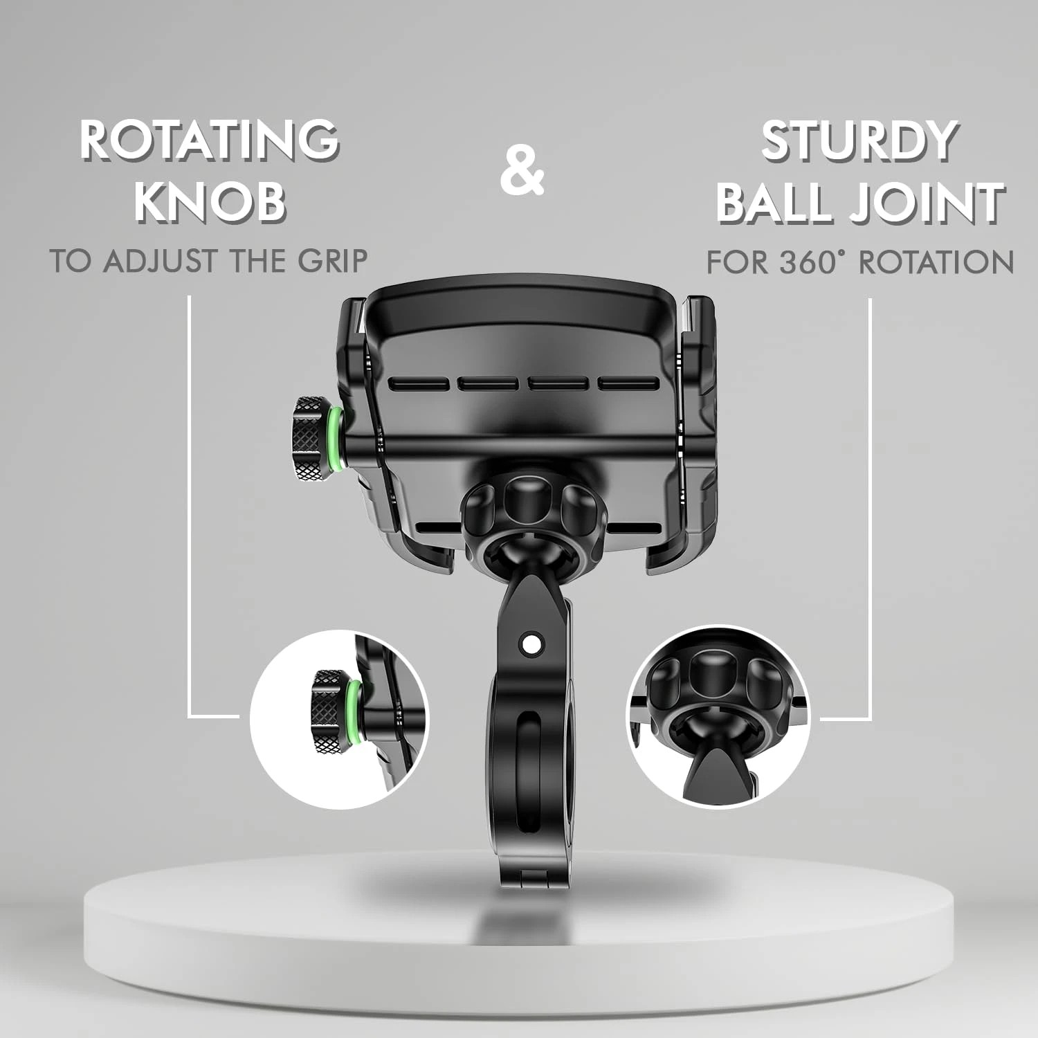 •  # UNIVERSAL JAW-GRIP FOR 4"-7" PHONES Adjustable grip securely holds smartphones of all sizes without blocking ports, cameras, or buttons. Perfect for navigation, GPS, or hands-free calling on any terrain.