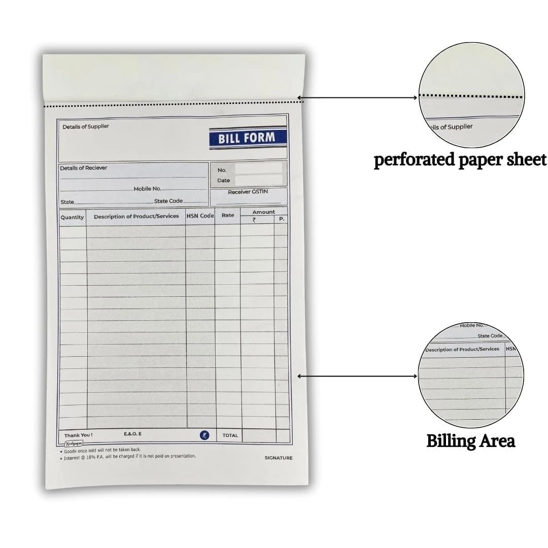 • High-Quality Paper: The Bill Book is made with premium paper that ensures durability and prevents ink bleed-through, providing a crisp and clear writing surface.