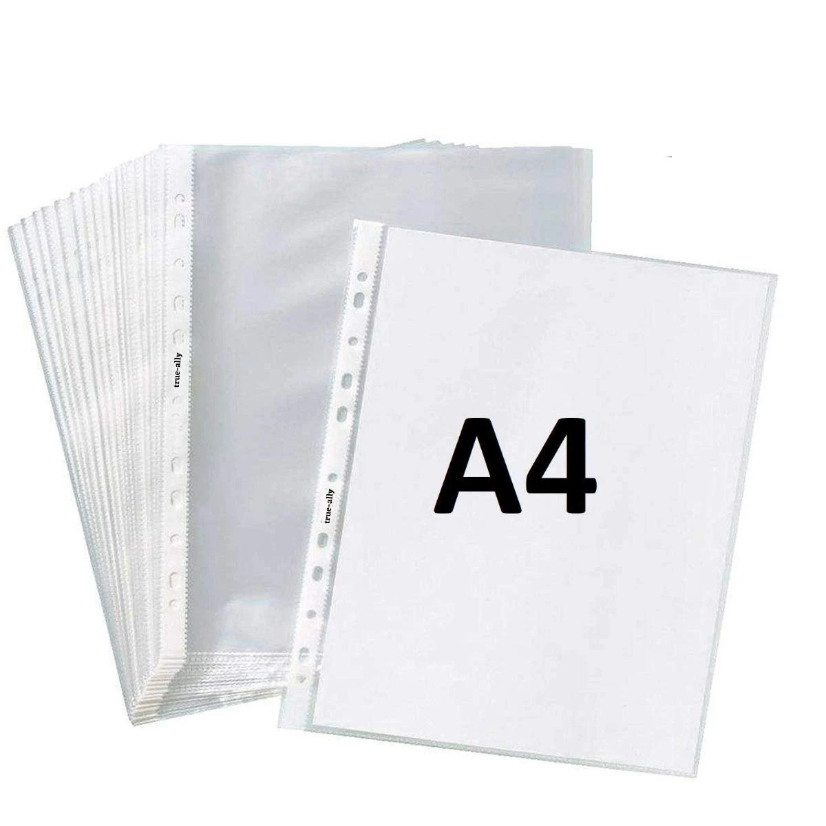 KD Enterprises Transparent Document Sleeves, Leaf Sheet Clear Certificates, Waterproof Sheet Protectors 11 Holes Punched Ring Files Folder (A4 Size) (50 Sheets - 200 Micron)