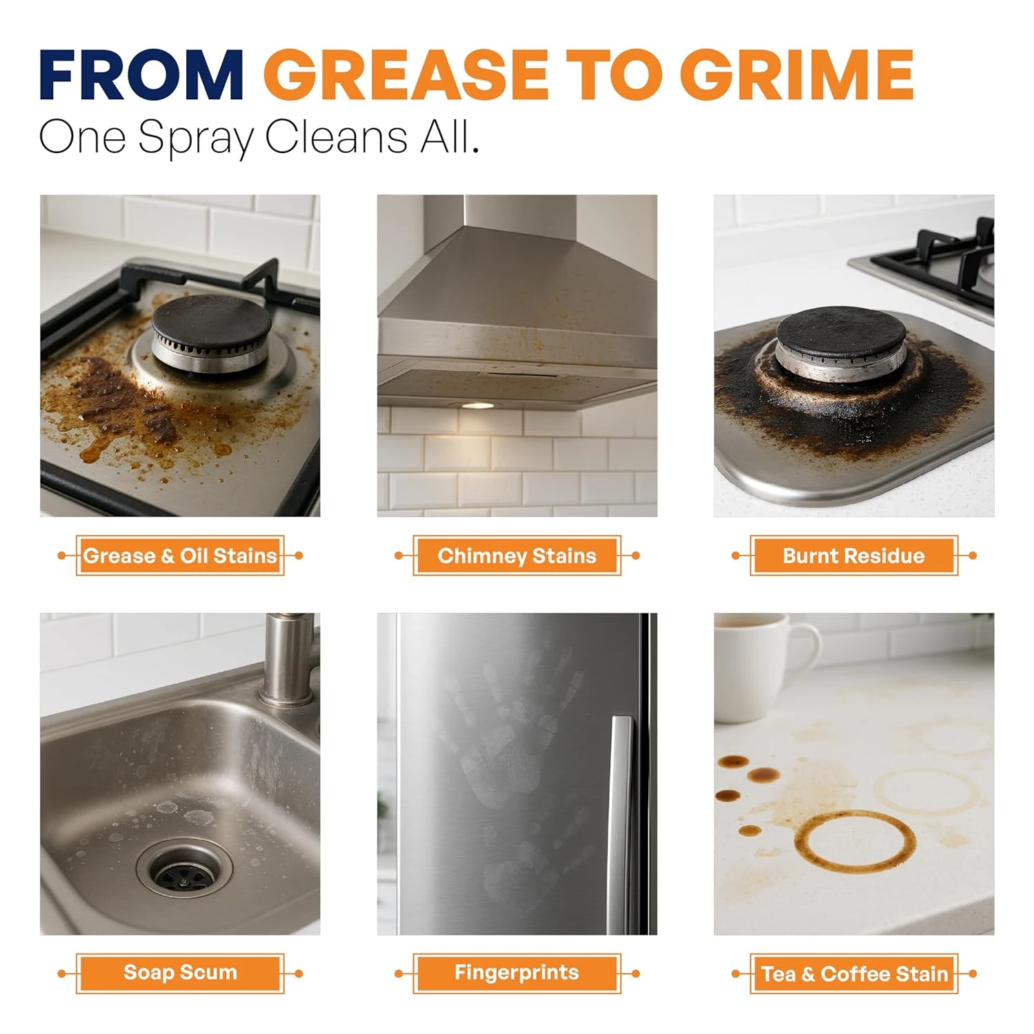 Kitchen & Tap Cleaner Combo – 300ml Each | Powerful Stain & Limescale Remover for Grease, Stoves, Chimneys, Faucets, Showerheads, Sinks, Mirrors & More | Fast-Action, Streak-Free Shine