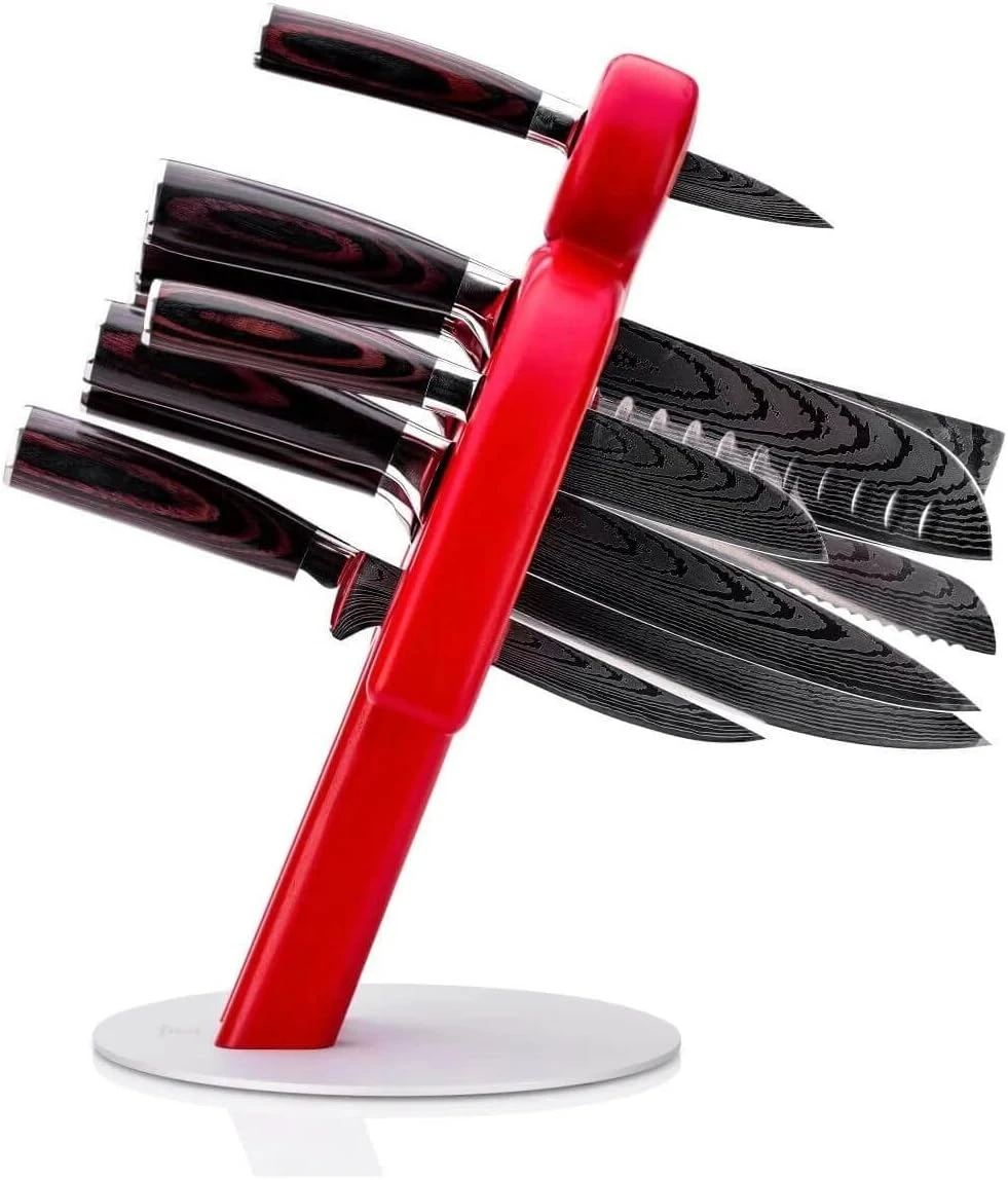 • German stainless steel knife set with 18/10 SS handles includes:8" Chef's knife, 8" bread knife, 8" carver, 5"utility knife, 3-1/2" parer