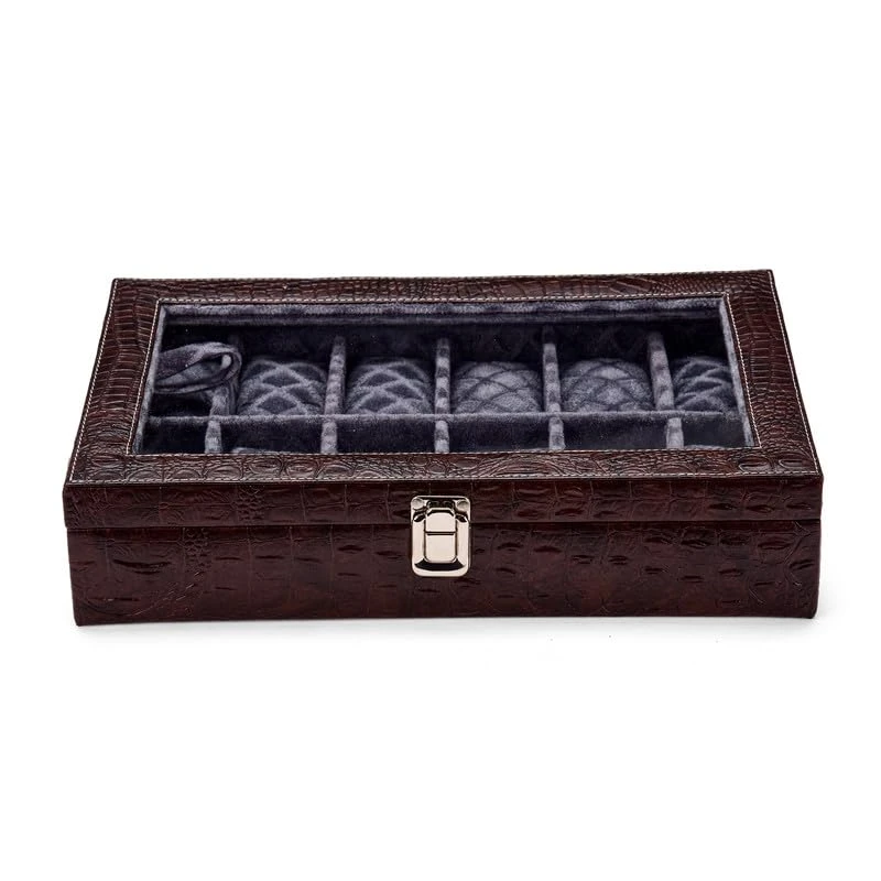 4 Slots Brown Unisex Watch Box Organiser Watch Box (Brown&Black, Holds 4 Watches)