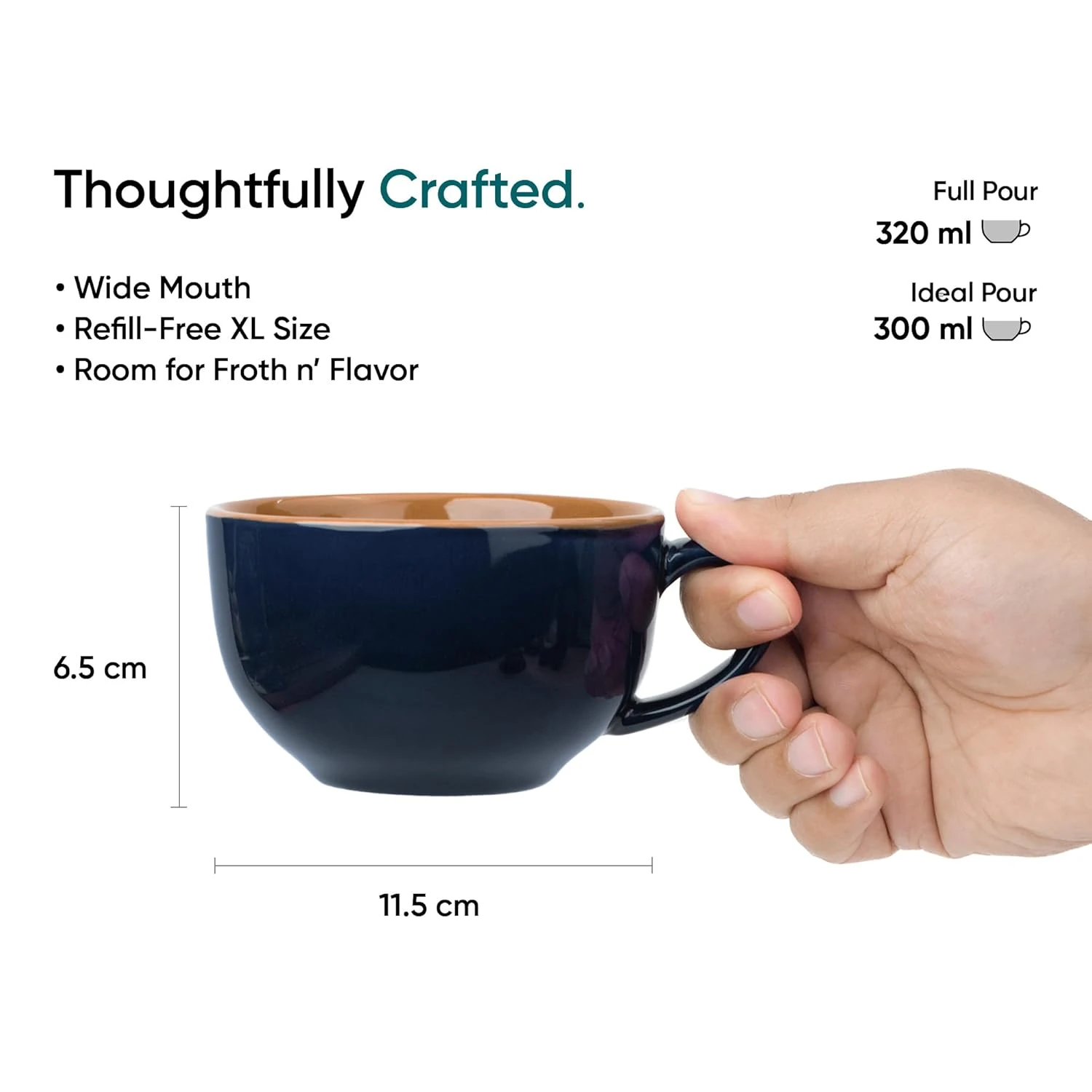 Large Ceramic Coffee Cup Set of 2, Midnight Blue, 320ml | Cappuccino Cup | Glossy Finish | Large Ceramic Coffee Cup | Premium Porcelain Coffee Cup | Microwave Safe (XL Cuppa - Midnight Blue)