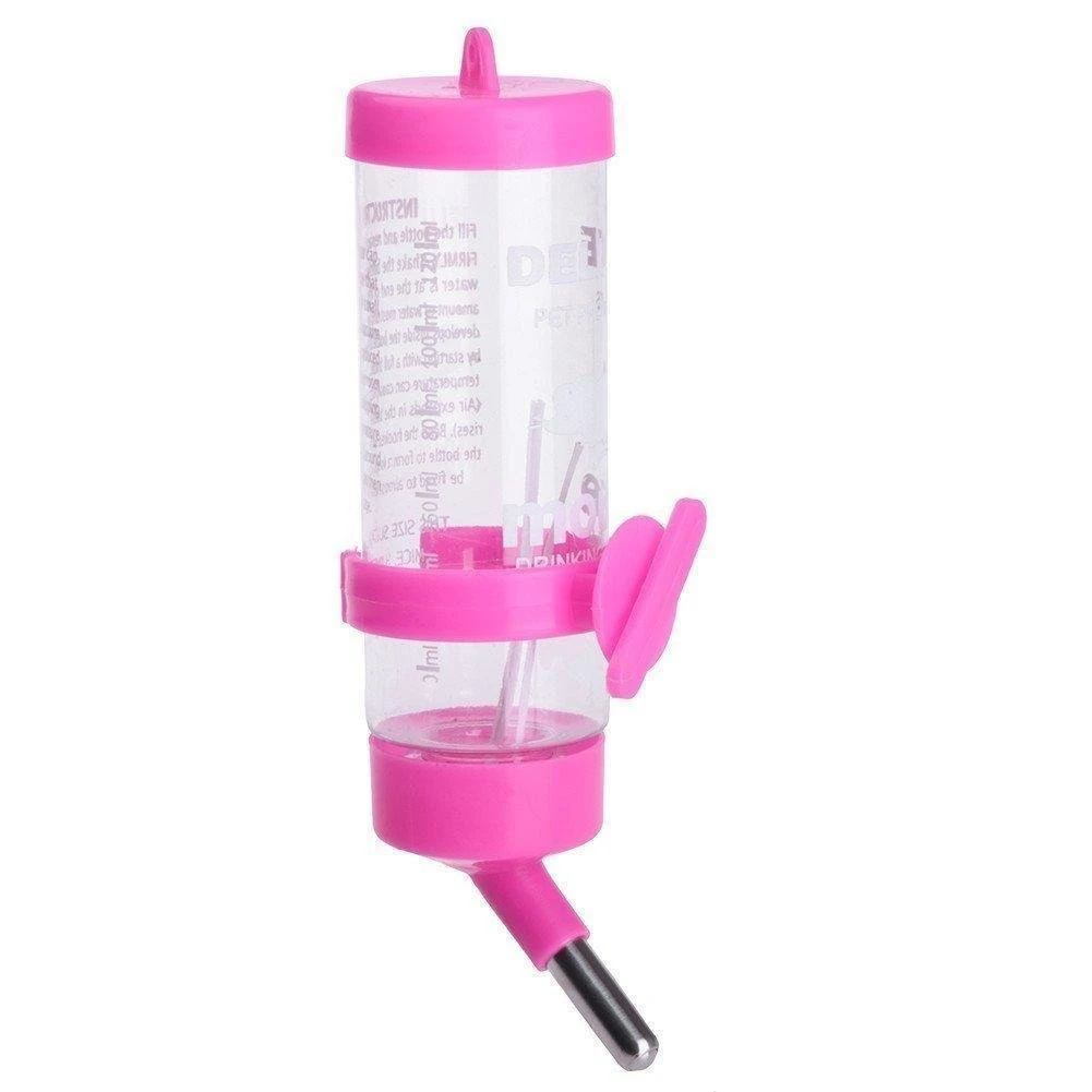 Leak Proof Cage Attachment Water Bottle Cum Feeder for Hamster/Guinea Pig/Rabbit/Puppy/Cat/Kitten/Dwarf/Gerbil/Mice/Ferret, 250 ml (Pink)