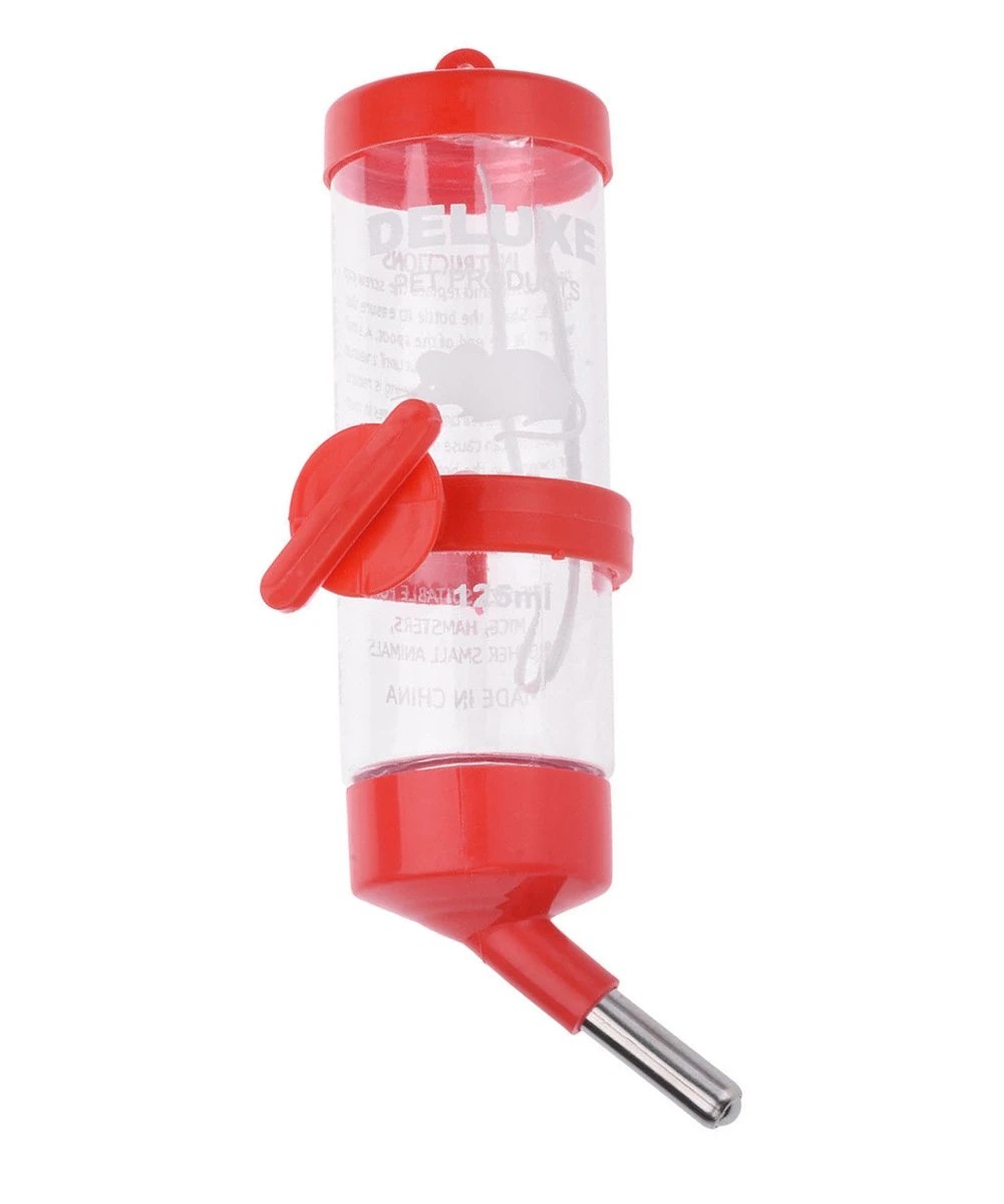 Leak Proof Cage Attachment Water Bottle Cum Feeder for Hamster/Guinea Pig/Rabbit/Puppy/Cat/Kitten/Dwarf/Gerbil/Mice/Ferret, 250 ml (Red)