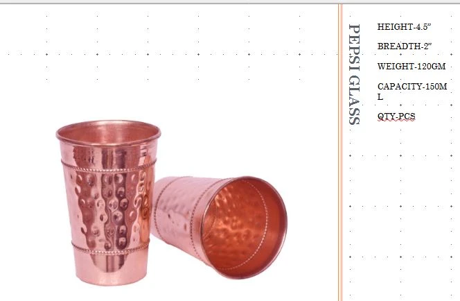 2. It is Safe to drink Pepsi and other Cold drinks in this copper glass, Specially made for drink cold drinks and water. Hand hammered to give an antique look and feel.
