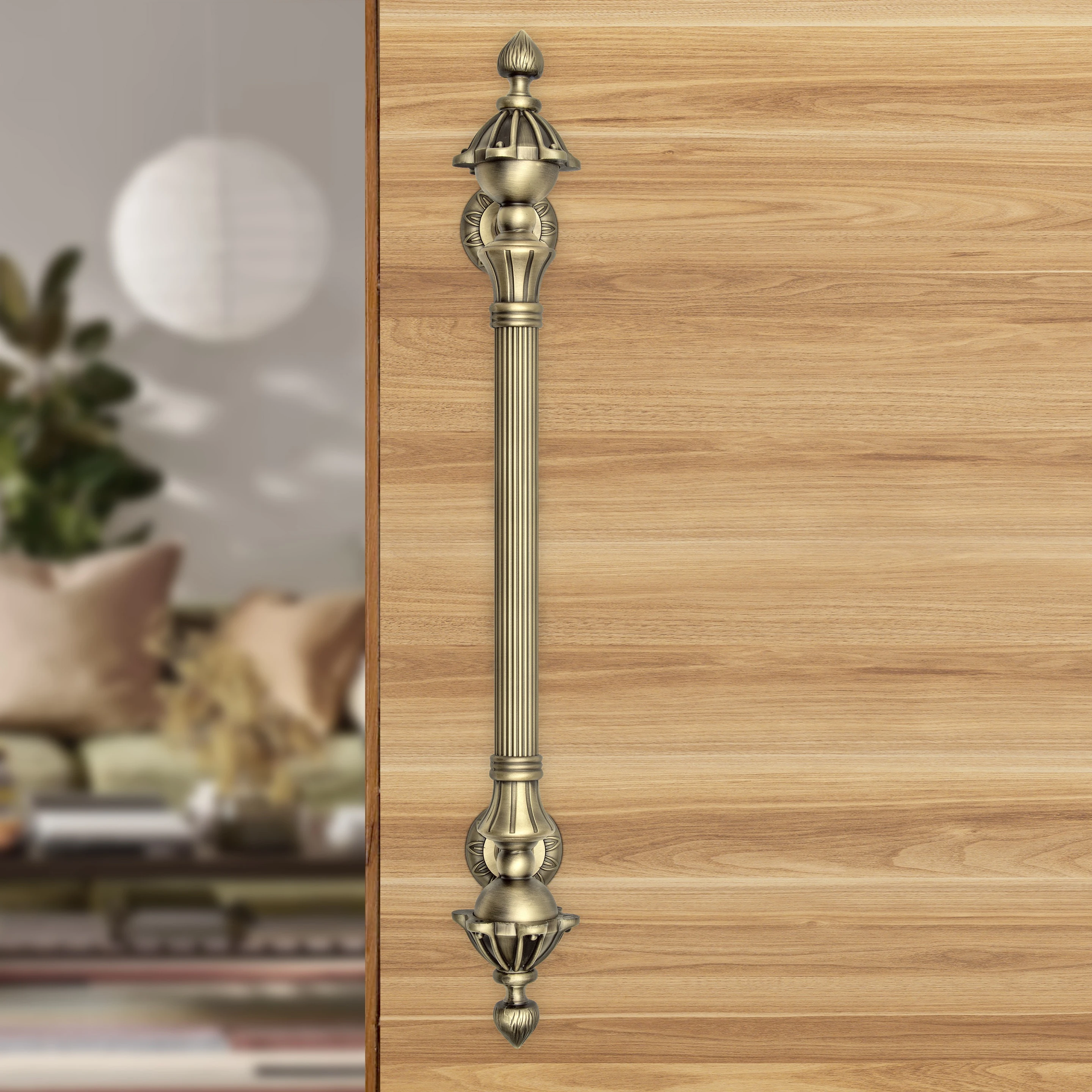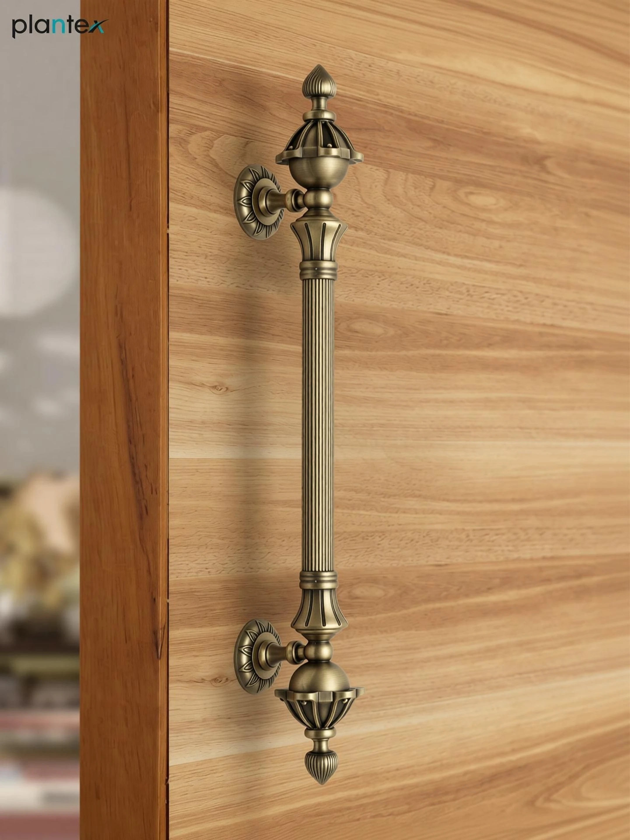 Spruce up your door with Plantex's stylish 18-inch handle! It's tough and beautiful, perfect for your entryway. Plantex's main door handl Built tough (aluminum & zinc), resists scratches & rust, lasts for years. Plantex's wooden door handle Stylish & comfy grip, beautiful antique brass finish. Installs cleanly with no visible screws! Plantex barn handle: Works everywhere! Indoor, outdoor, doors, cabinets, gates. The package includes 1 piece of a handle with required all fitting material and hole to hole length is 12 inches (total length is 18 inches) and the overall dimensions of this door handle are: (L) 47 x (W) 5 x (H) 7.5 cm and the weight of main door handle is 0.62 Kg.