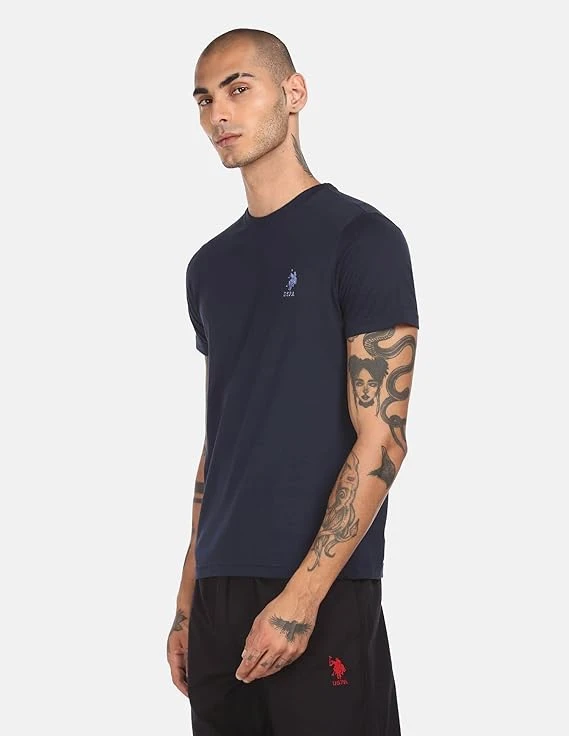 Men's Cotton Regular Fit Solid T-Shirt Crew Neck, Short Sleeves Color Navy Size Medium