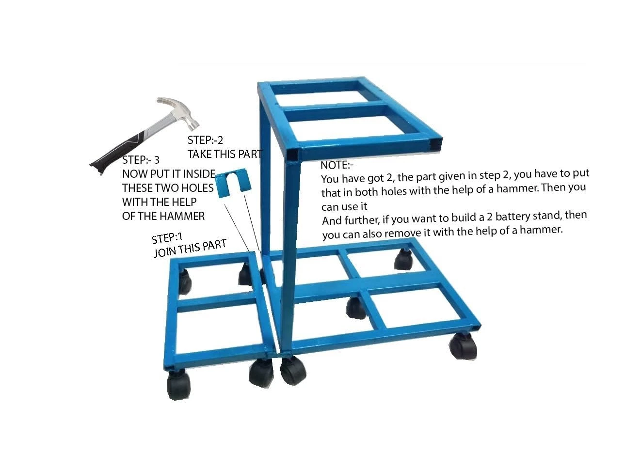 7. HEAVY DUTY METAL CONSTRUCTION FOR MAXIMUM DURABILITY The RAJCHIEF Metal Inverter Battery Trolley Stand is built with premium quality heavy-duty metal that provides strong support and long-lasting durability. The sturdy frame is designed to safely hold inverter batteries while maintaining excellent stability, making it a reliable battery holder stand for home, office, and commercial use.