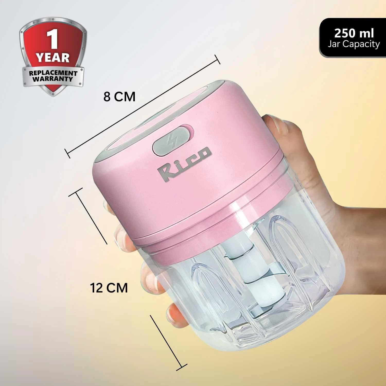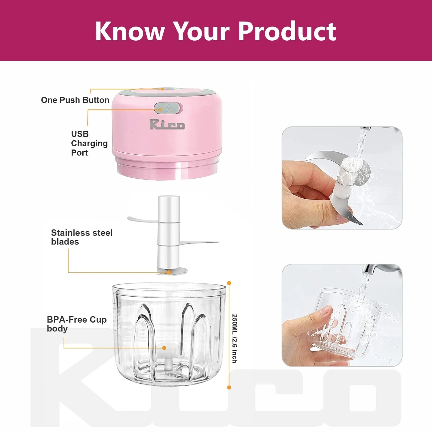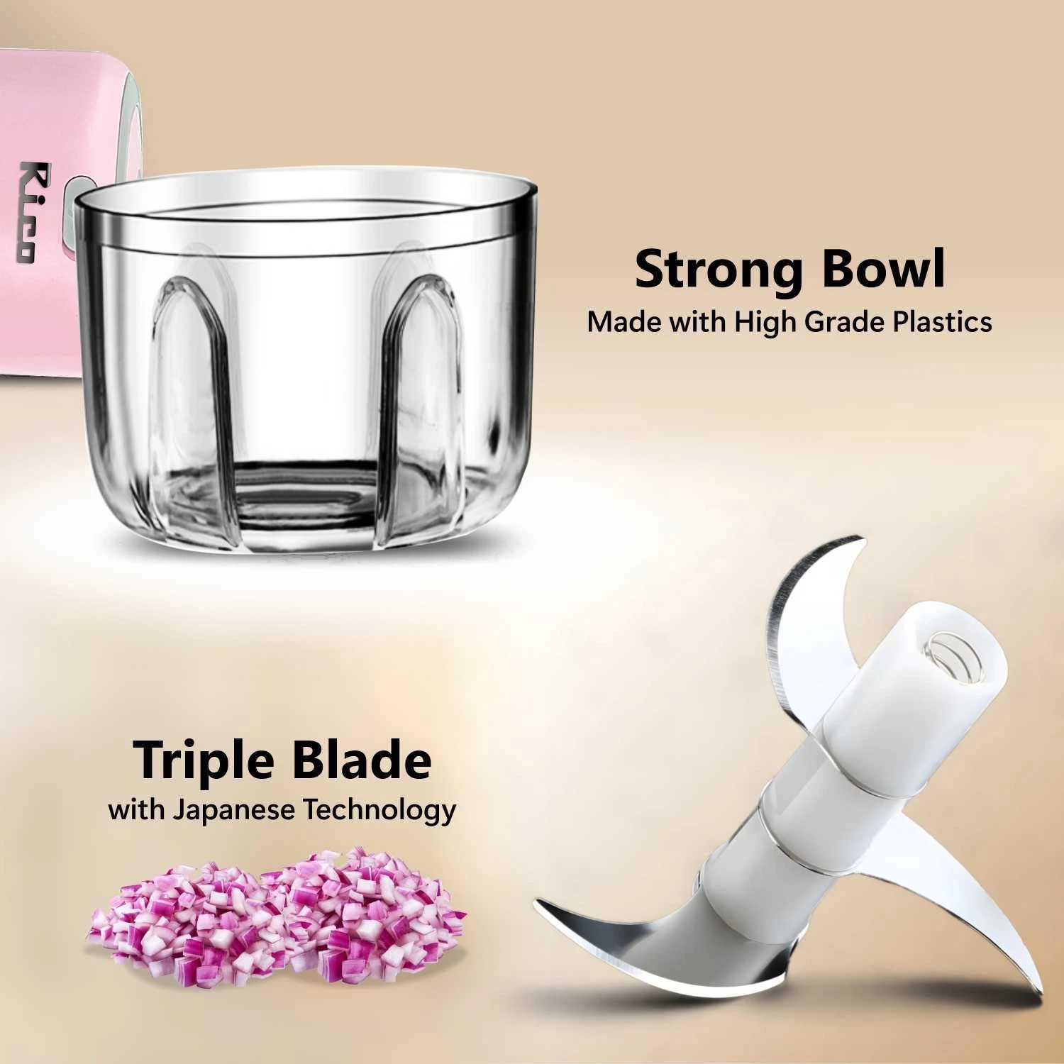 Mini Electric Rechargeable Chopper for Kitchen | 1200 mAh Battery, 50% Faster USB-C Charging | 250ml Onion & Vegetable Cutter | Ideal for Busy Moms (Pink) Pack of 1