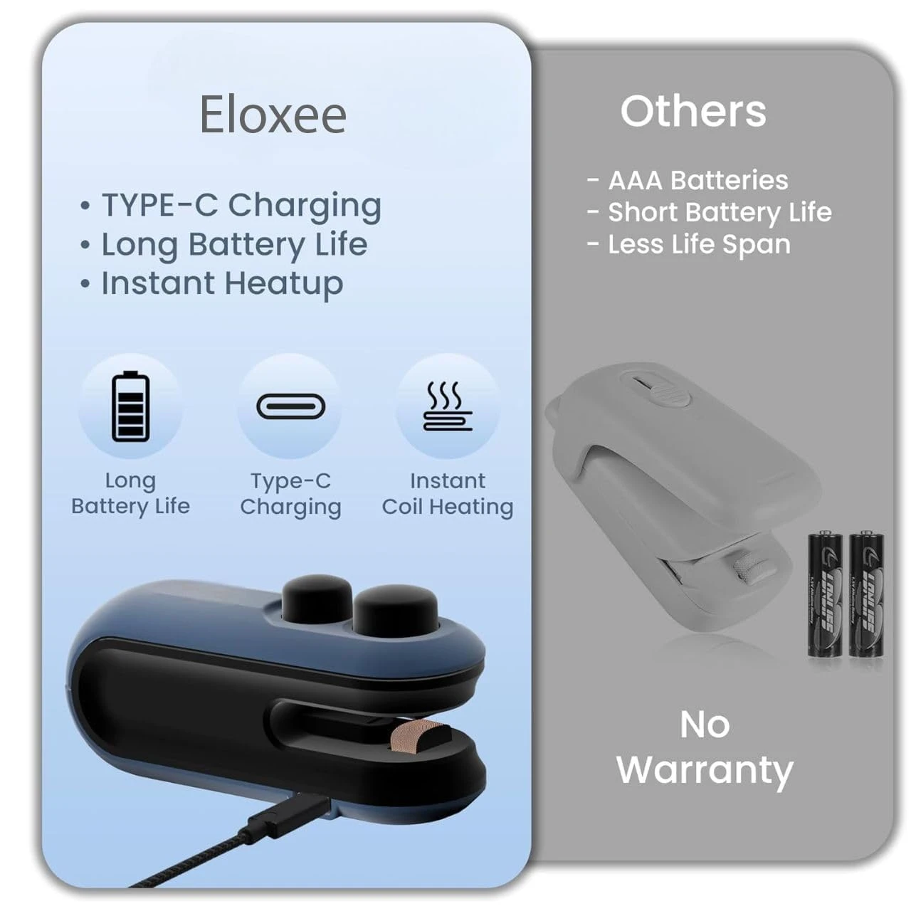 USB Rechargeable: Say goodbye to disposable batteries. This bag sealer features a USB rechargeable battery, providing long-lasting power and reducing waste. Simply plug it into any USB port to recharge, and you're ready to seal again.