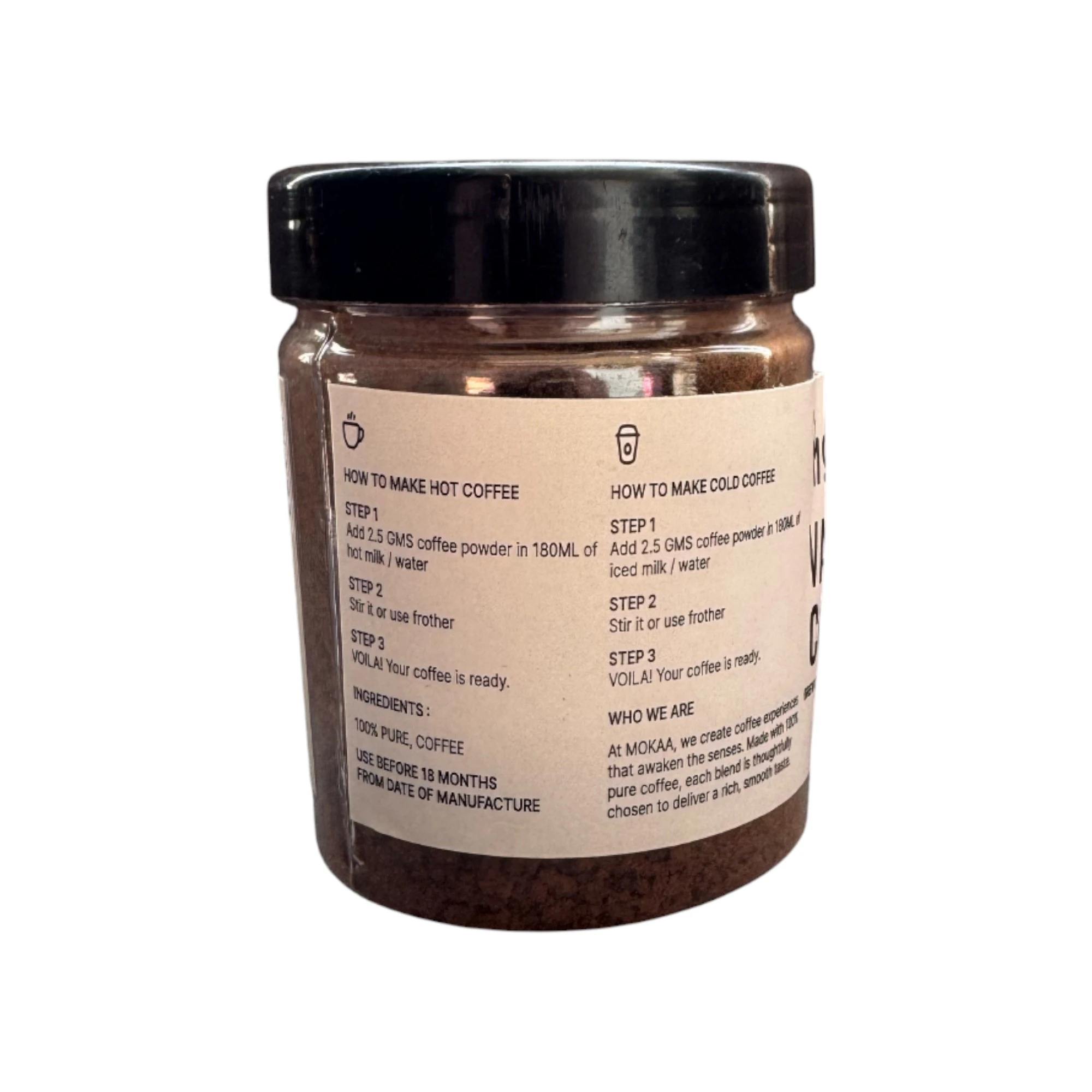 MOKAA Vanilla Instant Coffee 50g is the perfect blend for coffee lovers seeking a delightful twist on their daily brew. This premium instant coffee combines the rich, robust flavor of high-quality coffee beans with the smooth, creamy essence of vanilla, creating a luxurious taste experience that is both invigorating and comforting. Each 50g jar is designed for convenience, allowing you to enjoy a delicious cup of coffee in seconds—simply add hot water and stir. Ideal for busy mornings, afternoon pick-me-ups, or cozy evenings, MOKAA Vanilla Instant Coffee is not only quick to prepare but also versatile; it can be enjoyed black, with milk, or even as a base for your favorite coffee recipes. Elevate your coffee routine with this exquisite blend that promises to awaken your senses and satisfy your cravings, making every sip a moment to savor.