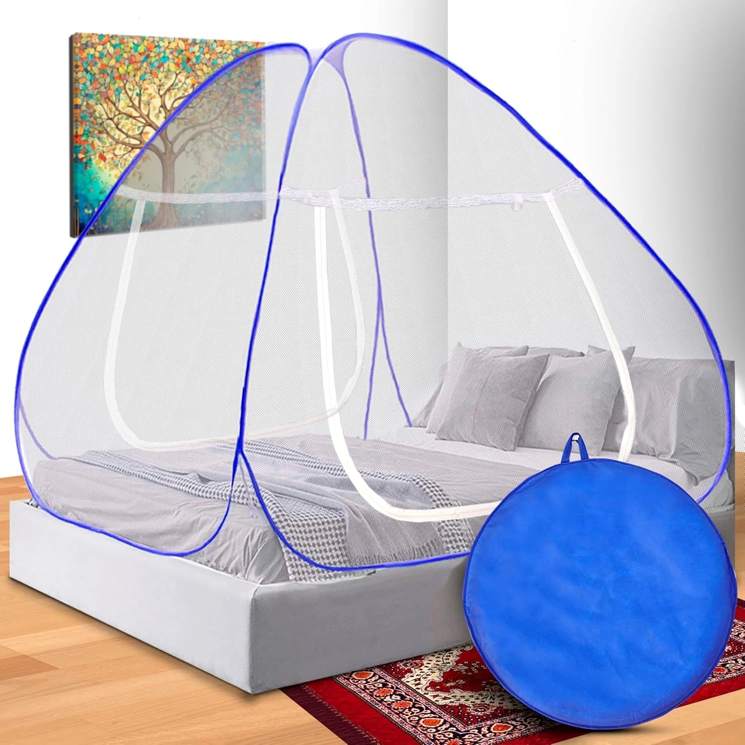 Mosquito Net for Double Bed | Foldable Machardani | Polyester 30GSM Strong Net | PVC Coated Corrosion Resistant Steel Wire (Double Bed King Size-Blue)