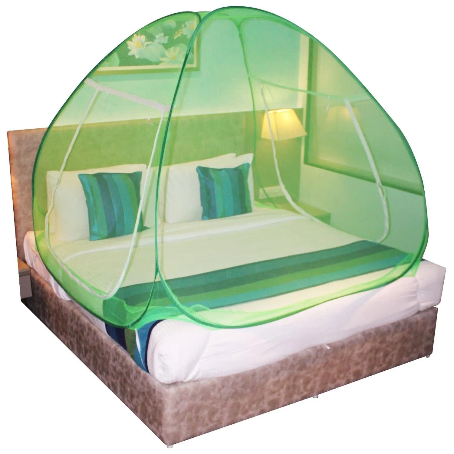 Mosquito Net for Double Bed Mosquito Net | King Size Foldable Machardani | Polyester 30GSM Strong Net | PVC Coated Corrosion Resistant Steel Wire Green