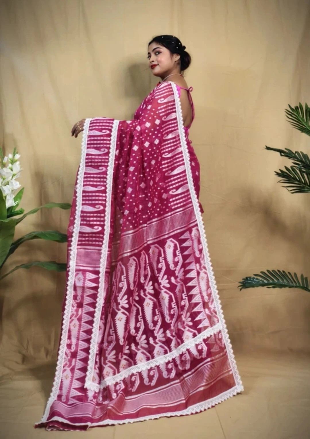 Most Trendy Jacquard Work Woven Saree with Unstitch Blouse Piece Color Pink