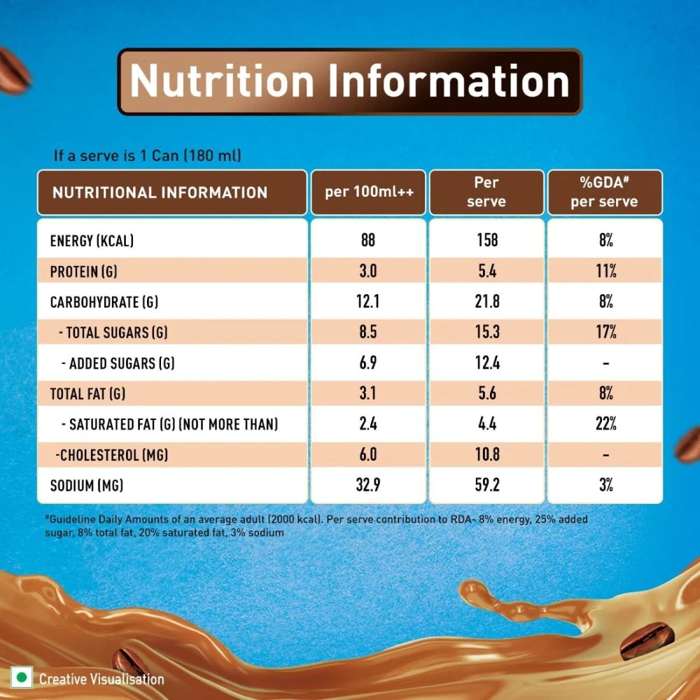 Now indulge in your favourite, the tastiest cold coffee in this convenient on the go pack. NESCAFÉ Chilled Latte brings out a delicious coffee indulgence with an extra creamy flavour, perfect for those who enjoy their coffee light and milky. One of the world’s most loved brands, NESCAFÉ has been making one of the world’s most loved beverages, Coffee, for over six decades. Over all these years, NESCAFÉ has grown on the commitment to make your brew ever more delightful, for you to kick-start an adventure! Usage: Pack contains 1 serve (180ml), providing approximately 126 kcal. Serve Chilled. Storage: Store in a cool, dry and hygienic place.