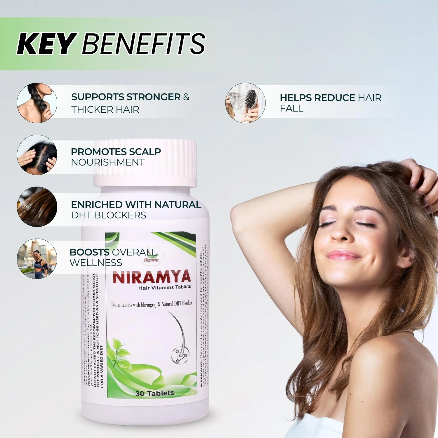 Niramya Hair Vitamin Tablets – 30 Tablets | Biotin, Zinc, Iron, Amino Acids & Herbal Extracts | Supports Hair Growth, Strength & Shine | Hair Fall Control Supplement for Men & Women Pack of 2