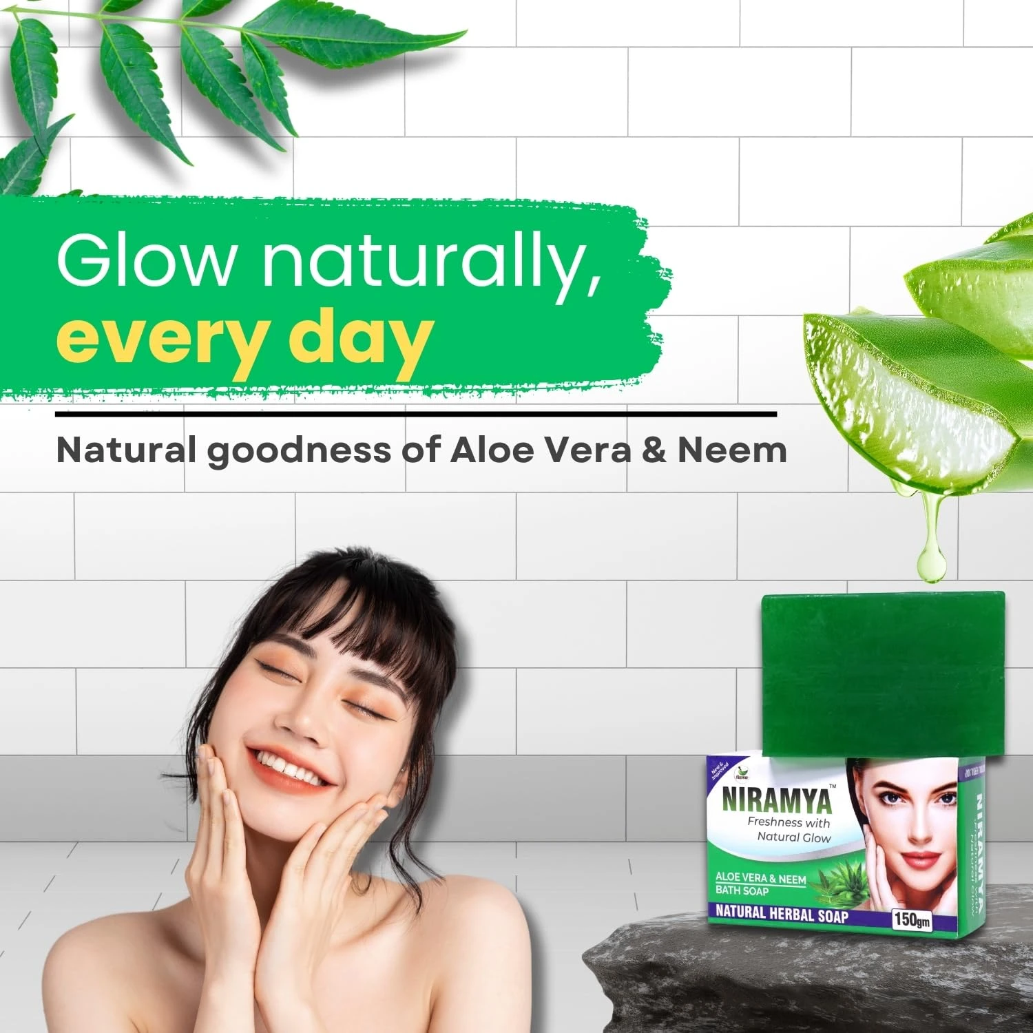 Niramya Herbal Bathing Soap – 150g | Natural Ayurvedic Soap Bar for Soft & Glowing Skin | Sulphate-Free (Neem Aloe Vera) Pack of 2