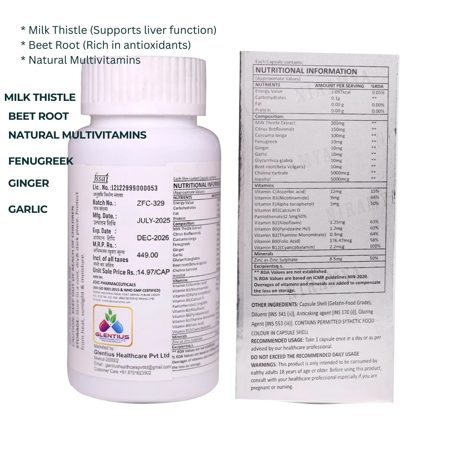 Niramya Liver Detox Capsules – Milk Thistle, Beet Root, Multivitamins & Minerals | Silymarin Extract 80% | Supports Liver Health & Detox | 30 Capsules Pack of 2