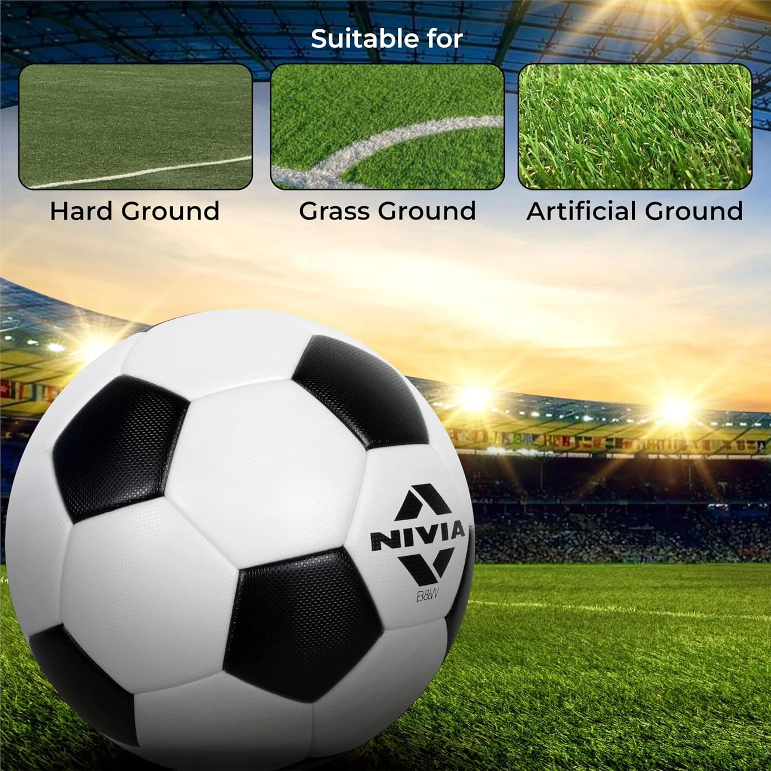 Nivia B&W Football, Thermobond, 32 Panels, Suitable for Soft & Wet Ground, Hard Ground, Football for Men and Women Size-5 (Black and White) Pack of 1