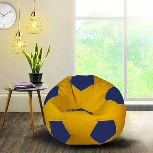 • The Faux Leather Double Colour Football Print Round Shape Bean Bag Cover Is Crafted From High-Quality Faux Leather Material, Meticulously Designed To Resemble The Texture And Appearance Of A Football.