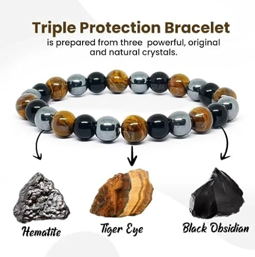 Original Triple Protection Bracelet | Certificate of Authenticity | For Inner Power, Confidence and Positive Energy | Astrology Bracelet for Men and Women | Beautifully Crafted with Healing Crystals