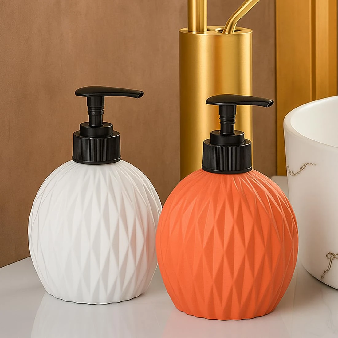 Outdoor Living Dimond Cut Design Liquid Soap Dispenser, 300ml, Multipurpose Refillable Plastic Pump for Hand Wash, Dish Wash, Shampoo, Kitchen, Bathroom, and Household Use Pack of 2