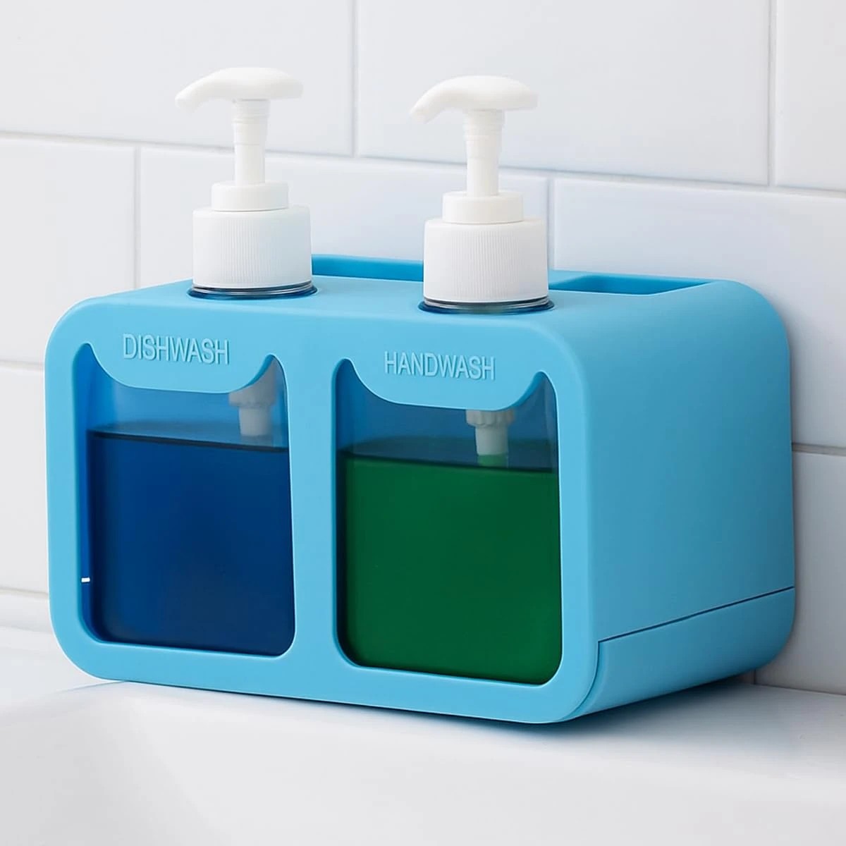 • Convenient dual-chamber design labeled “dishwasher” and “HAND WASH” for easy identification — no mix-ups between dish soap and hand soap.