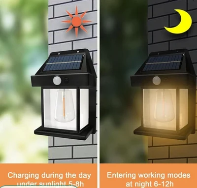 The Solar Wireless Wall Sconce has a sensitive dusk-to-dawn sensor that sensitively detects the brightness of the surrounding environment and automatically turns off at dawn and on at dusk. The Solar Dusk-to-Dawn Wall Light will keep working for up to 12 hours after fully charged during the day. Note: The switch should be turned ON before the first use.
