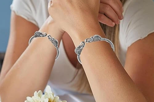 Beautiful oxidized bangles with intricately carved elephant heads, symbolizing wisdom, strength, and good luck.