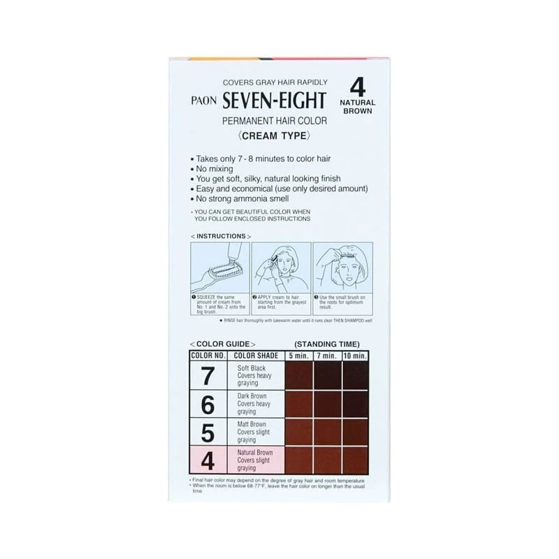 The PAON Hair Color Refill in No. 4 Natural Black is a permanent hair color solution designed to provide 100% gray coverage with a natural-looking finish. This cream-type hair color is easy to apply, requiring no mixing, and delivers results in just 7–8 minutes. It includes a built-in conditioner for a soft, silky, and shiny appearance. The refill package contains 40g of color cream and 40g of oxidation cream, suitable for partial use.