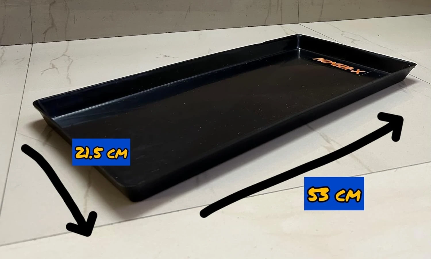 1. DIMENSIONS: Large rectangular tray measuring 53 cm x 21.5 cm, perfectly sized to accommodate tall tubular inverter batteries