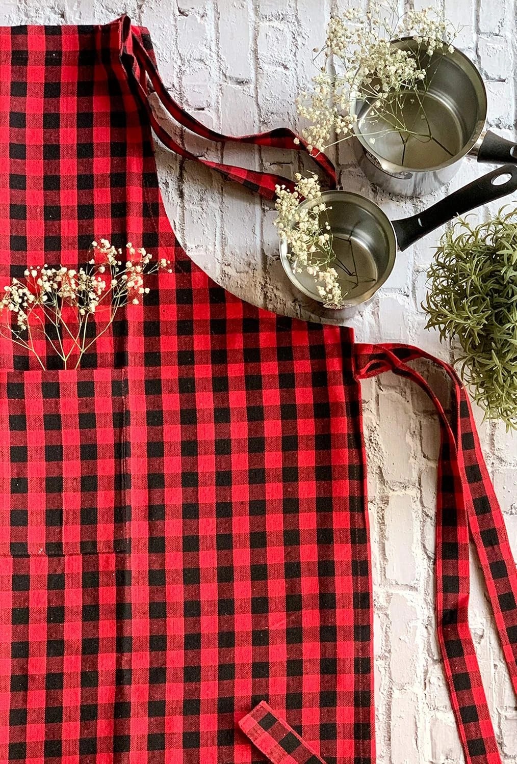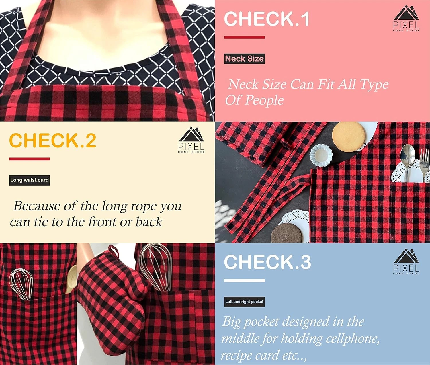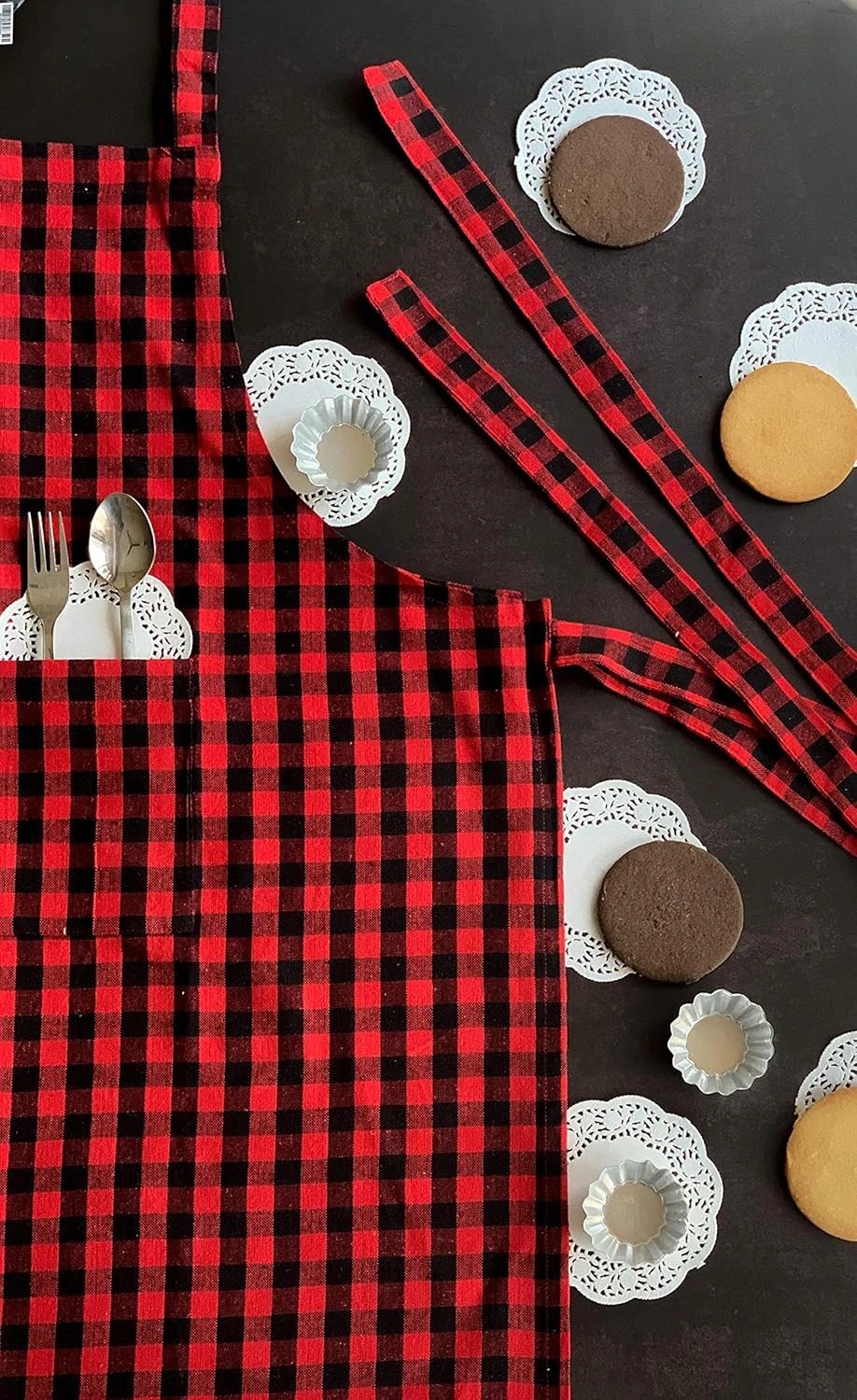 •  Package Contents: Cotton Apron 100% Cotton Check Kitchen Apron with Front Center Pocket Design Apron