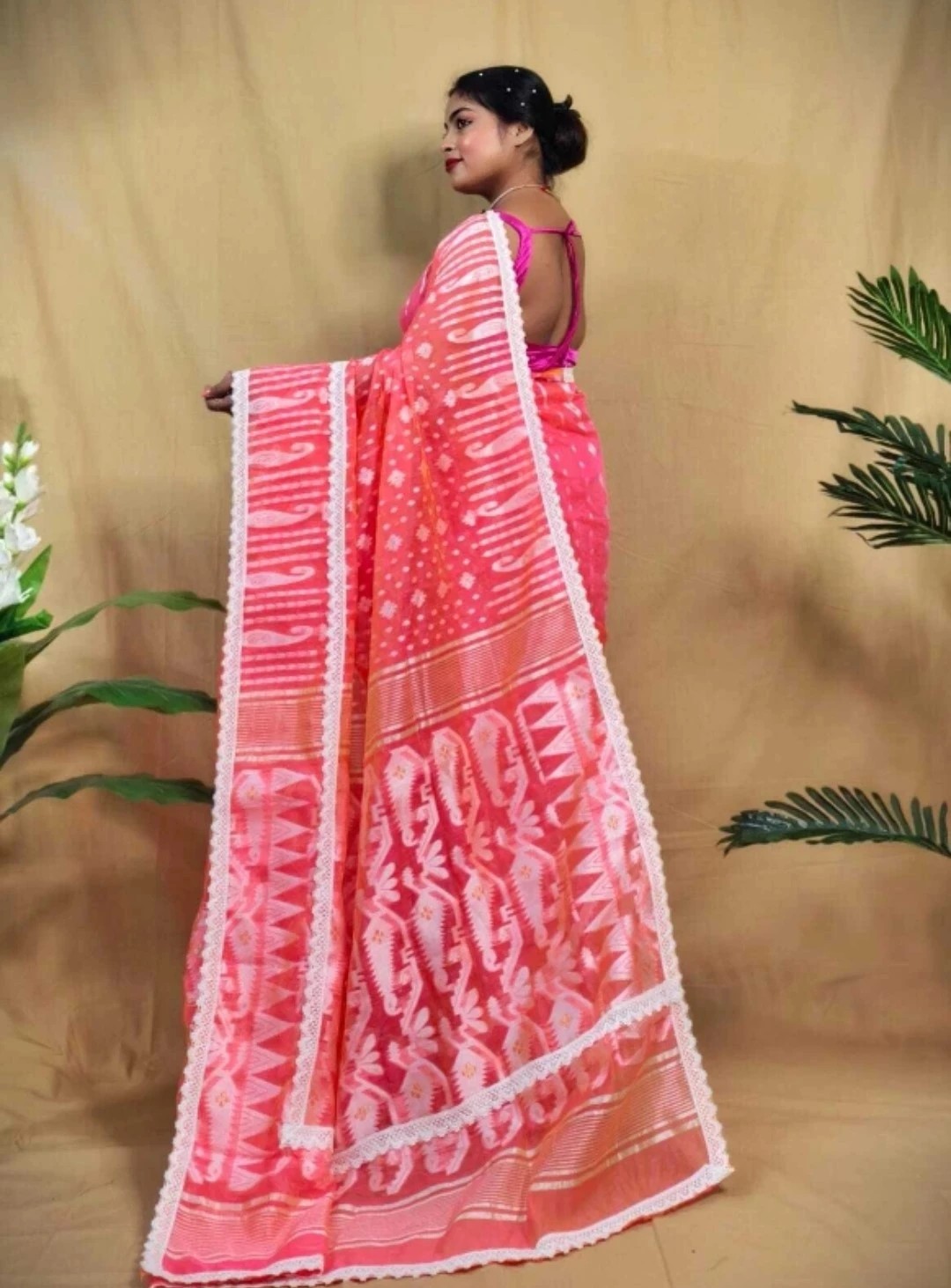 Plain Women's Elegant Cotton Saree with Blouse Material-Embrace Trendy Style Color Light Pink