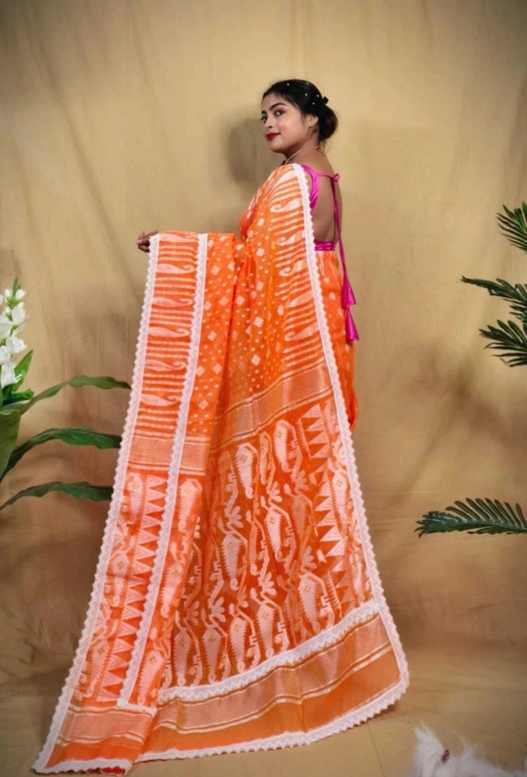Plain Women's Elegant Cotton Saree with Blouse Material-Embrace Trendy Style Color Orange