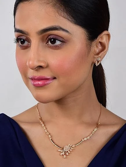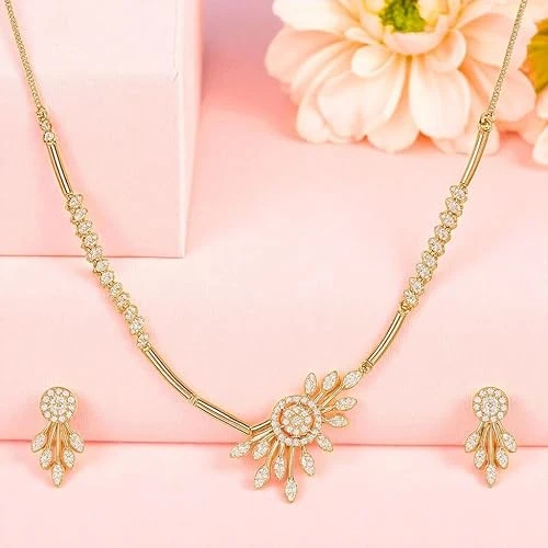 Plated AD Stone Jewellery Set for Women, Girls | Special Ocassion, Wedding, Engagement, Dating | Anti Tarnish | Anti Allergy | Necklace and Earring Set | Gift for Her