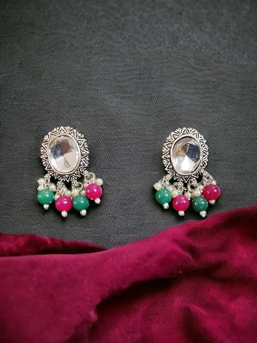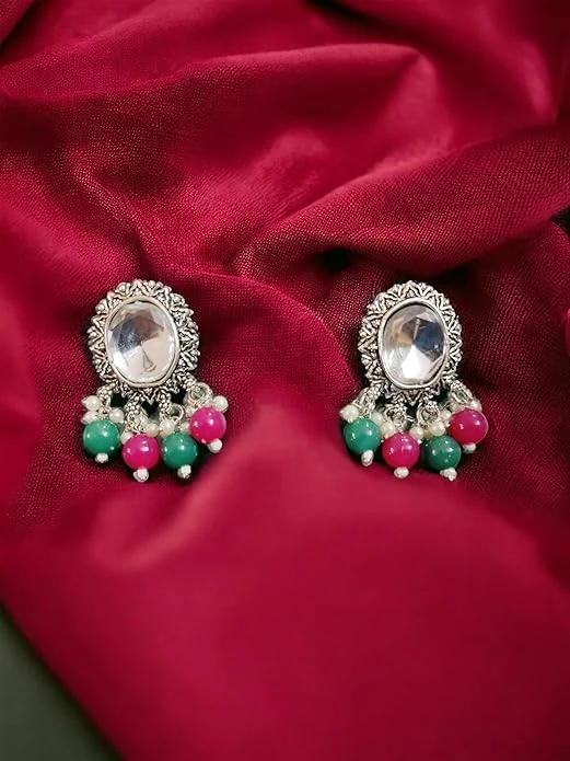 Presents Stylish Hexagon Shape eight different Colour Stone Studded Oxidized Jewellery Necklace Set for Women & Girls.(necklace & earrings set of 2