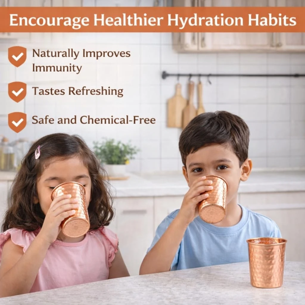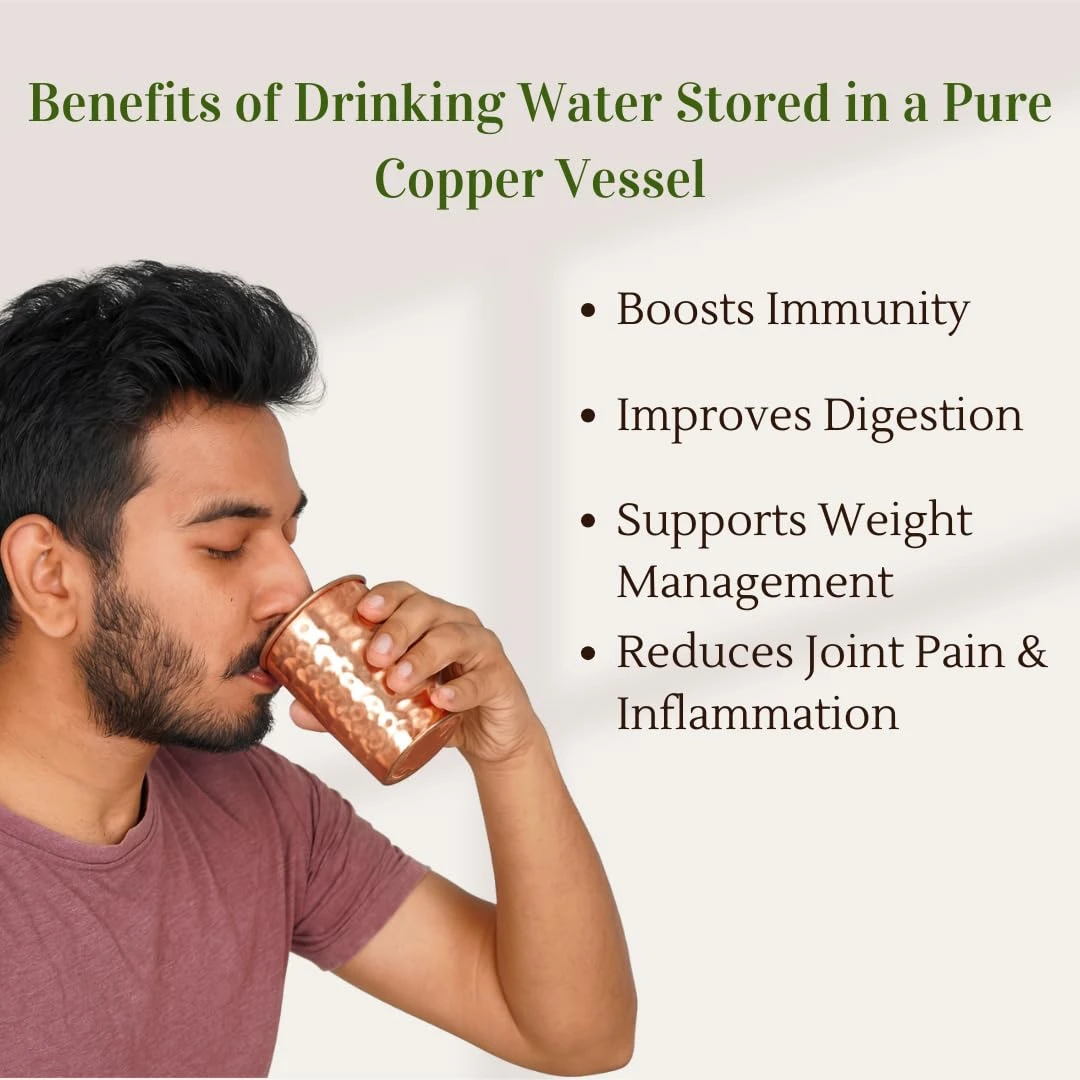 Pure Copper Glass for Drinking Water – Ayurvedic Copper Tumbler – Traditional Hammered Design | Leakproof & Durable