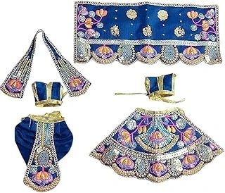 Radha Krishna Dress | Poshak for Yugal Jodi | Radhe Krishna Ji Poshak with Heavy Work (Blue, Dress Size 5 Inches for 8 & 9 Inches Murti) 1 Pair